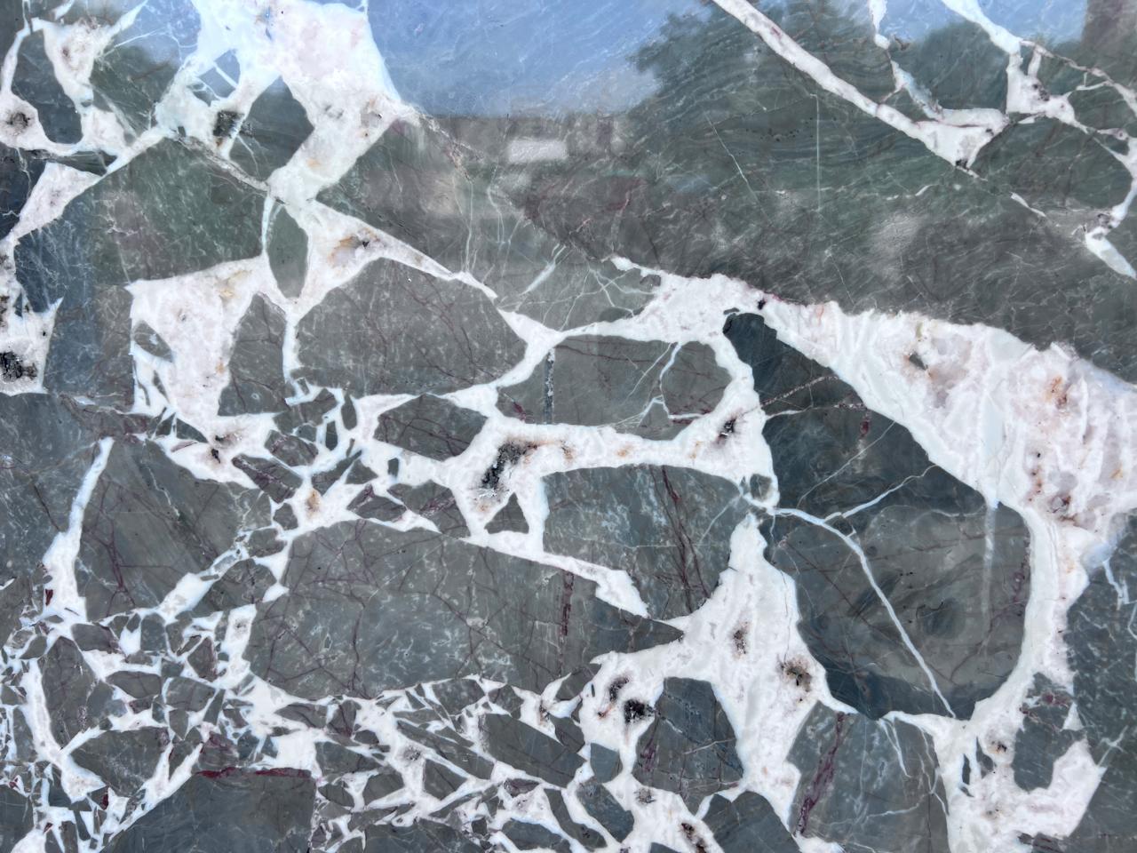 Aura Grey Marble is quarried in Madhya Pradesh, India. It is close to quartzite category material and harder than granite with fine crystals. It is valued for its unique broken-vein look and luxurious finish, making it a popular choice in high-end architecture and interior design.
